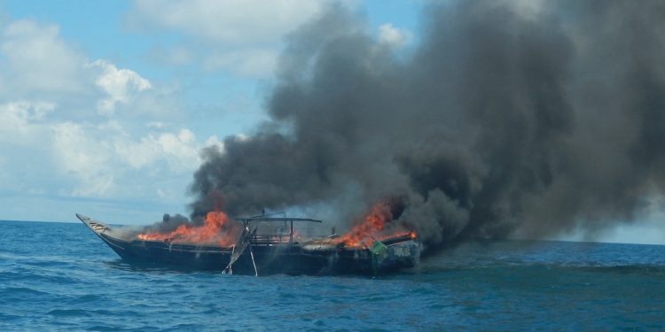Two fishing vessels with Indonesian crews intercepted off the coast of Australia’s Northern Territory have gone up in smoke, and the crews will face court appearances.