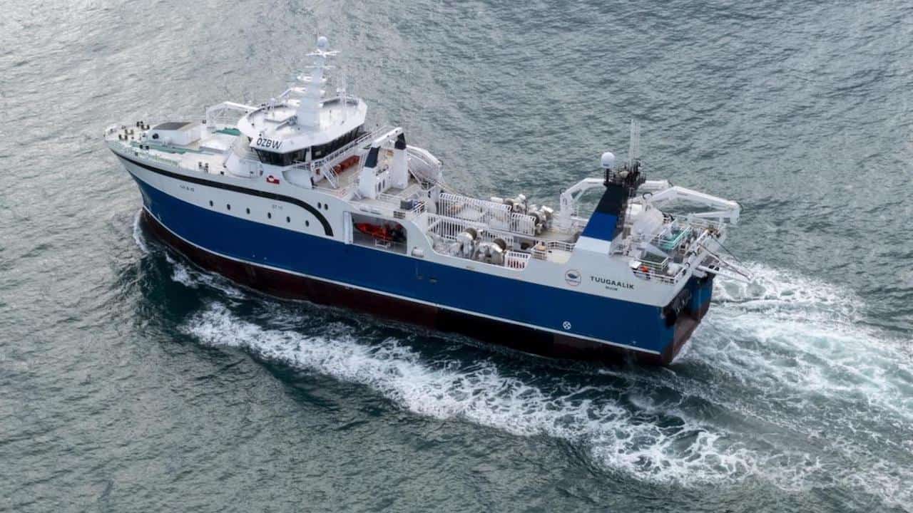 This latest delivery for Royal Greenland’s partner company Qaleralik, the 82.30-metre LOA, 18-metre beam Tuugaalik follows what has become a proven formula as the company continues an ambitious programme of fleet renewal. An announcement was also made at Royal Greenland’s annual general meeting that a contract has been signed for another trawler in the Skipsteknisk-designed series, for delivery in 2025 to replace Akamalik.